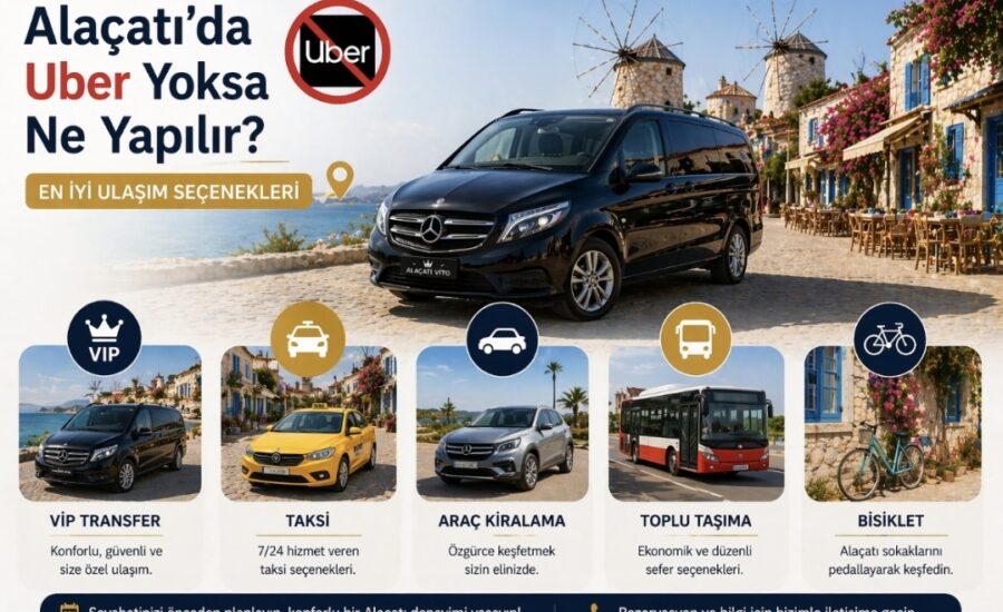 Alaçatı Uber 2026 yaz sezonunda çalışmamaktadır. Türkiye'de Uber hizmeti 2020'den beri bulunmamaktadır. Özellikle yaz aylarında ulaşım talebi çok yüksektir. Alaçatı Uber Alternatifi VIP Transfer ile garantili transfer sağlanır. Yaz sezonunda rezervasyonlu sistem şarttır.