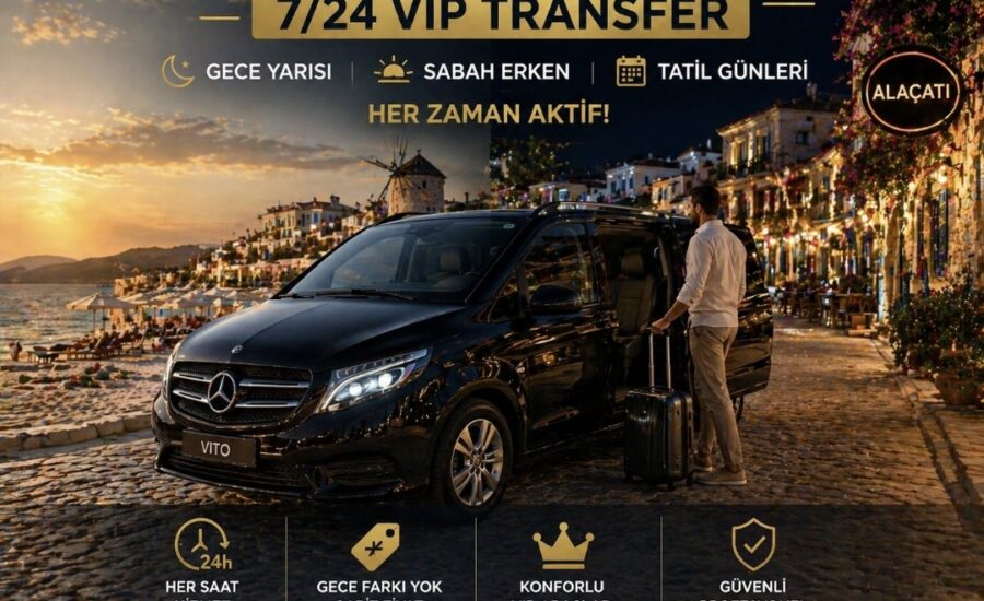 Alaçatı Uber yerine 7/24 kesintisiz VIP transfer hizmeti mevcuttur. Gece yarısı sabah erken her saat aktiftir. Türkiye'de Uber olmadığı için alternatif çözüm gereklidir. Alaçatı Uber Alternatifi VIP Transfer ile her saatte güvenli ulaşım