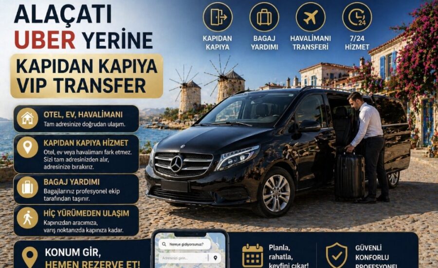 Alaçatı Uber yerine kapıdan kapıya VIP transfer hizmeti sunulmaktadır. Başlangıç adresinizden alınır varış adresinize bırakılırsınız. Hiç yürümeden araç değiştirmeden ulaşım sağlanır. Alaçatı Uber Alternatifi VIP Transfer ile tam hizmet alırsınız. Her detay düşünülmüş